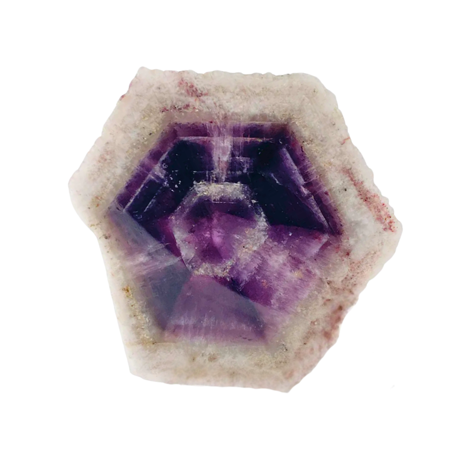 Trapiche Amethyst is one of the rarest and most fascinating forms of amethyst, instantly recognizable by its natural six-pointed star pattern. In this raw gem form, the star and hexagonal structure are preserved within the surrounding white matrix, offering a grounded and elemental expression of this extraordinary crystal.