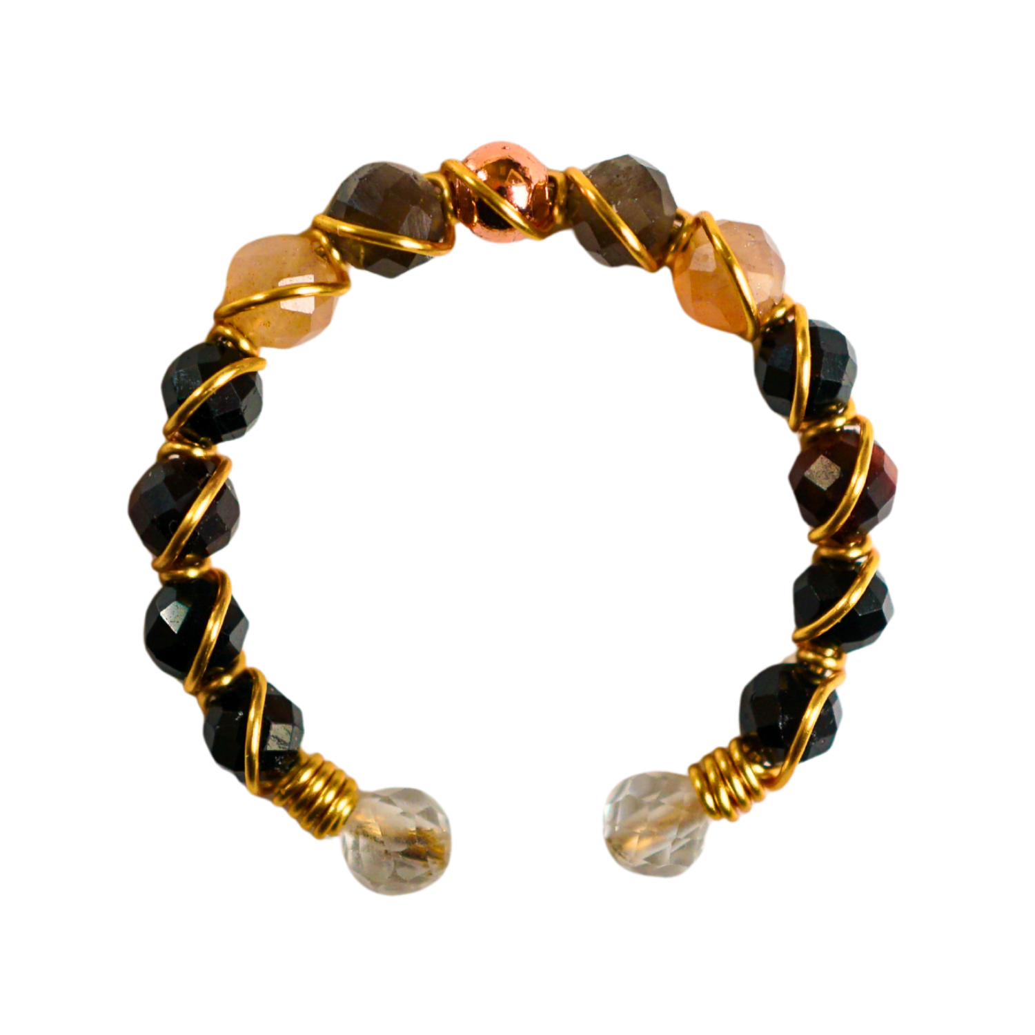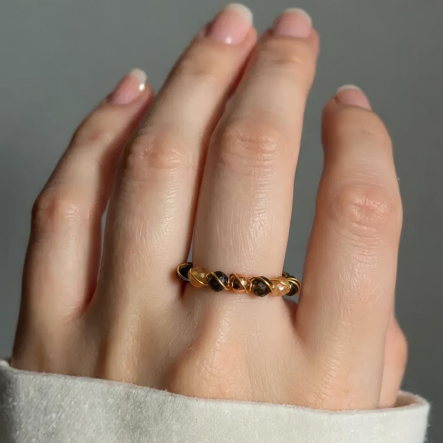 Wrapped in gold wire, the ring creates a continuous frequency circuit that allows the energy to flow steadily throughout your day.