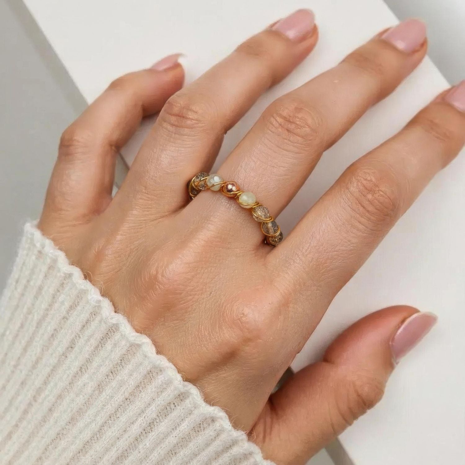 Wrapped in gold wire, the ring creates a continuous energetic flow that works quietly in the background, helping you stay mentally aligned and clear throughout the day.