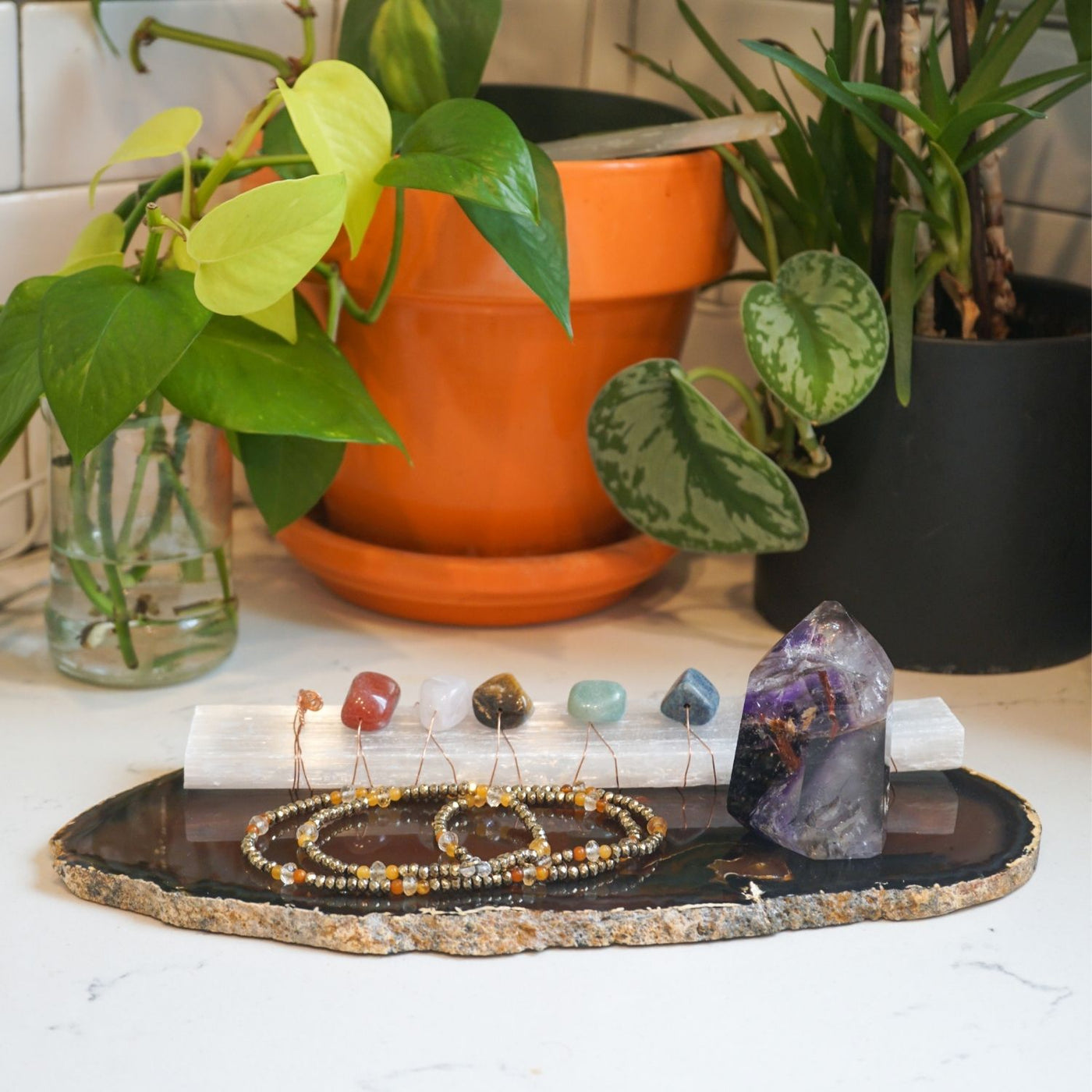 The Agate Plate is like a still point in a swirling world. With its natural banding and earthy color palette, it doesn’t just bring beauty—it brings balance. This piece is made to hold space, clear energetic clutter, and help you reconnect to what’s real.