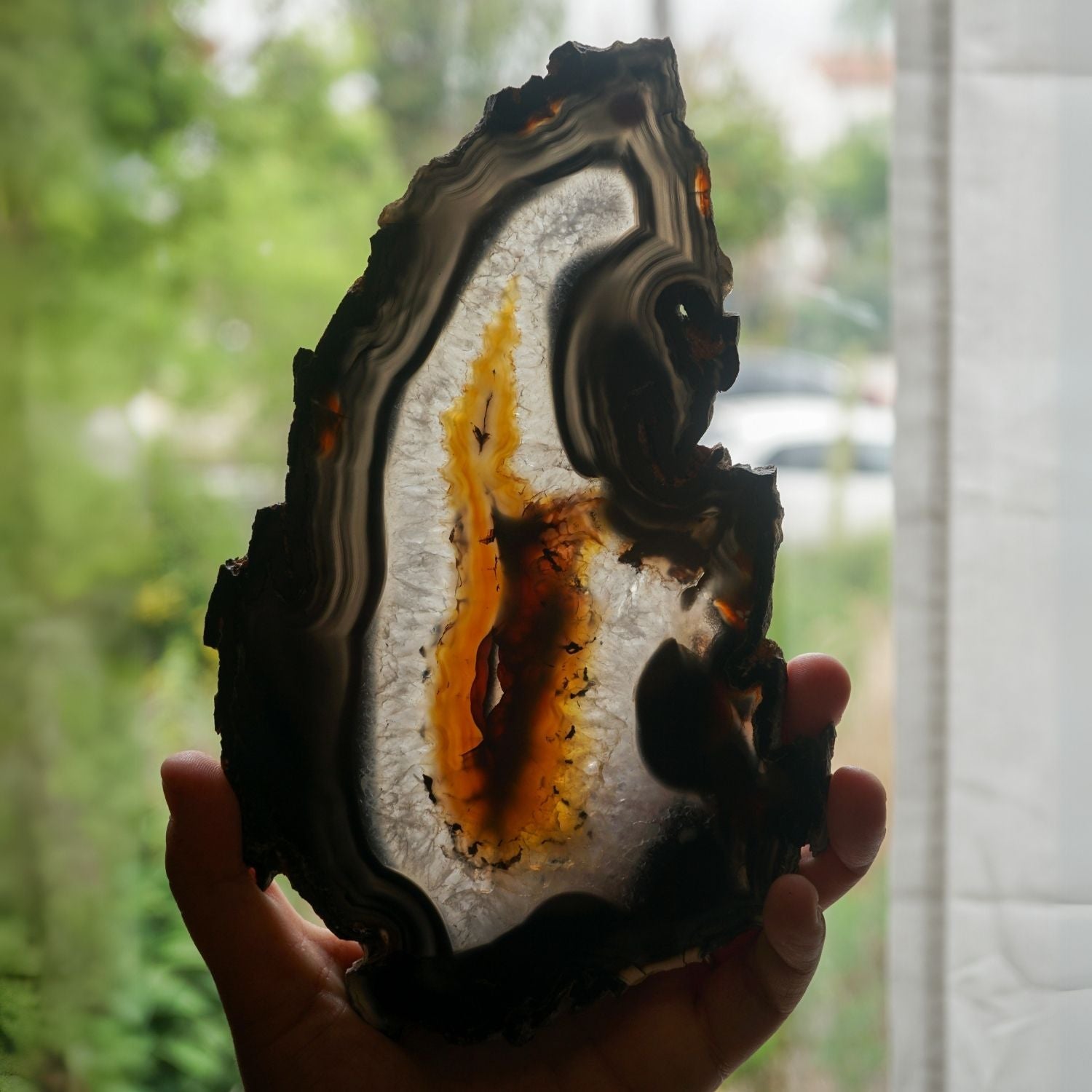 Place the Agate Plate in your home to create an energetically clear, grounded environment. Use it as a crystal grid base, an altar anchor, or simply a sacred object to bring peace to your space. You can also use it to stabilize other crystals—set them on the plate overnight to recharge and harmonize their energy.
