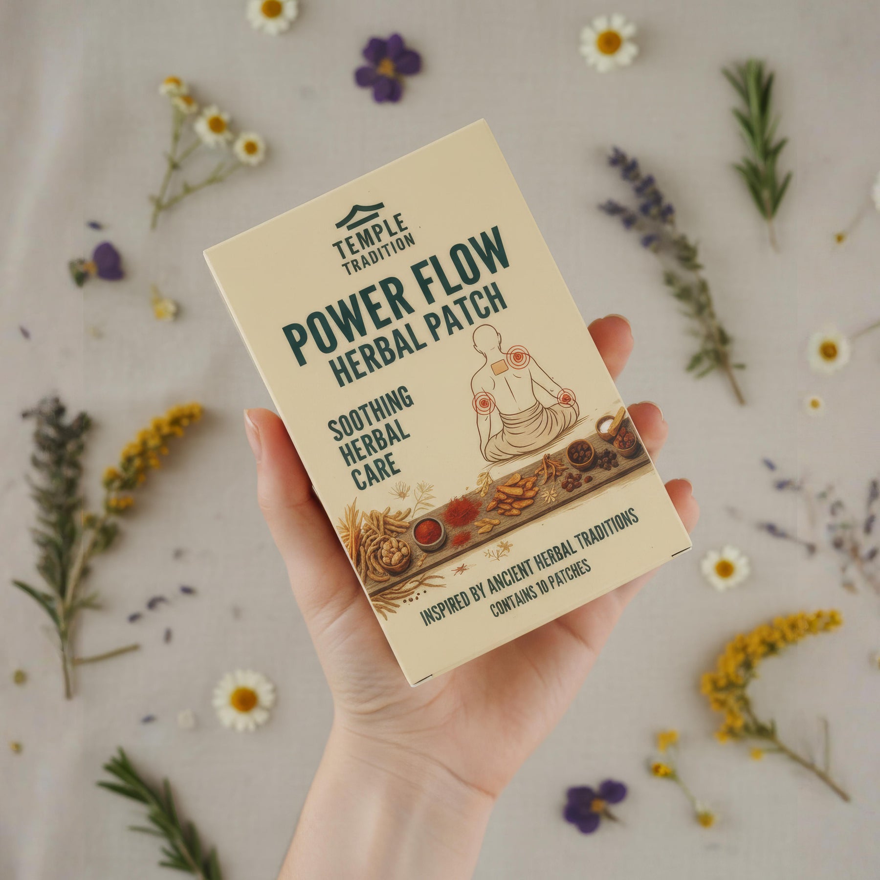 Power Flow Herbal Patches are inspired by over 600 years of traditional use, based on an herbal formula historically used in temples to support monks through physical training, long meditation sessions, and the demands of daily practice. Crafted with 25 natural herbal ingredients, this formula carries the essence of ancient wisdom into a modern, convenient ritual.