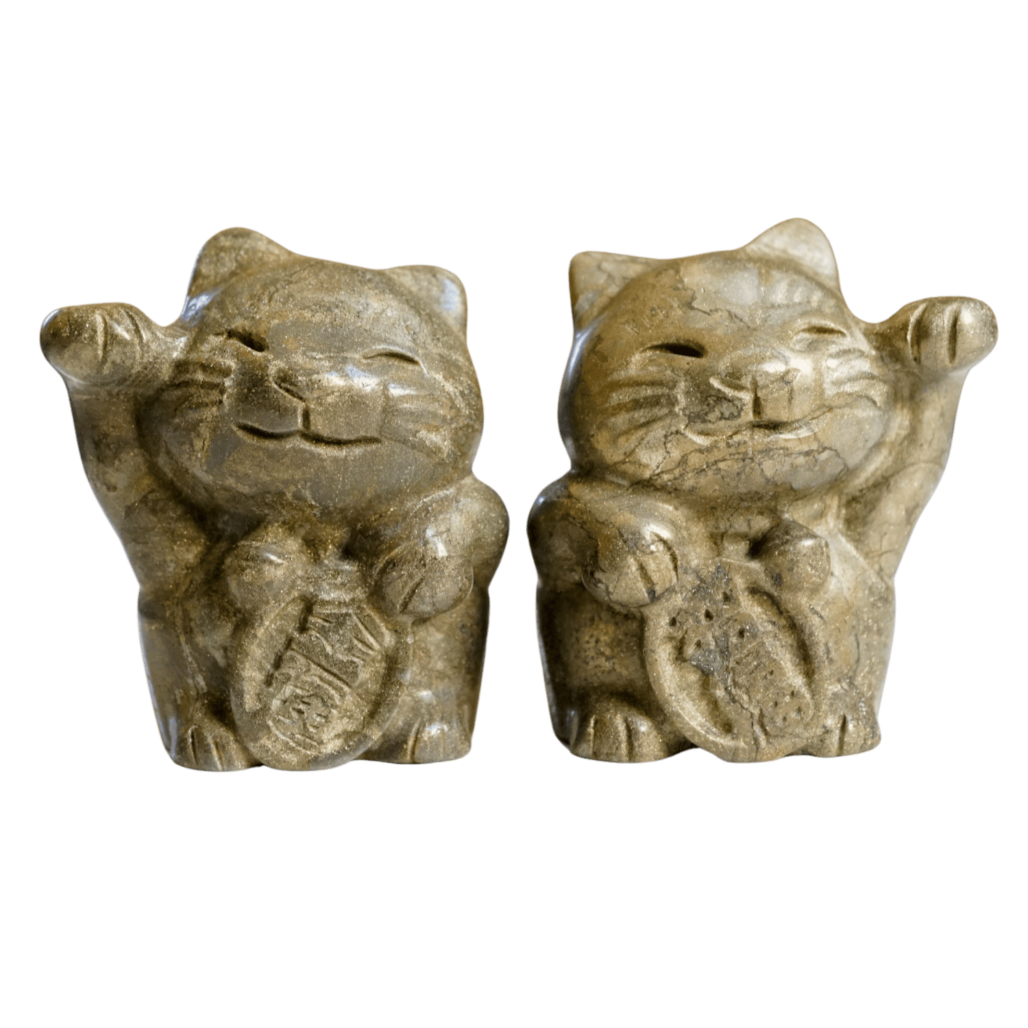 In Japanese tradition, the Lucky Cat is placed near entrances, cash registers, and desks to invite customers, money, and good fortune. Its raised paw symbolizes calling prosperity forward. When carved in Pyrite, that invitation becomes grounded in strength, strategy, and action.