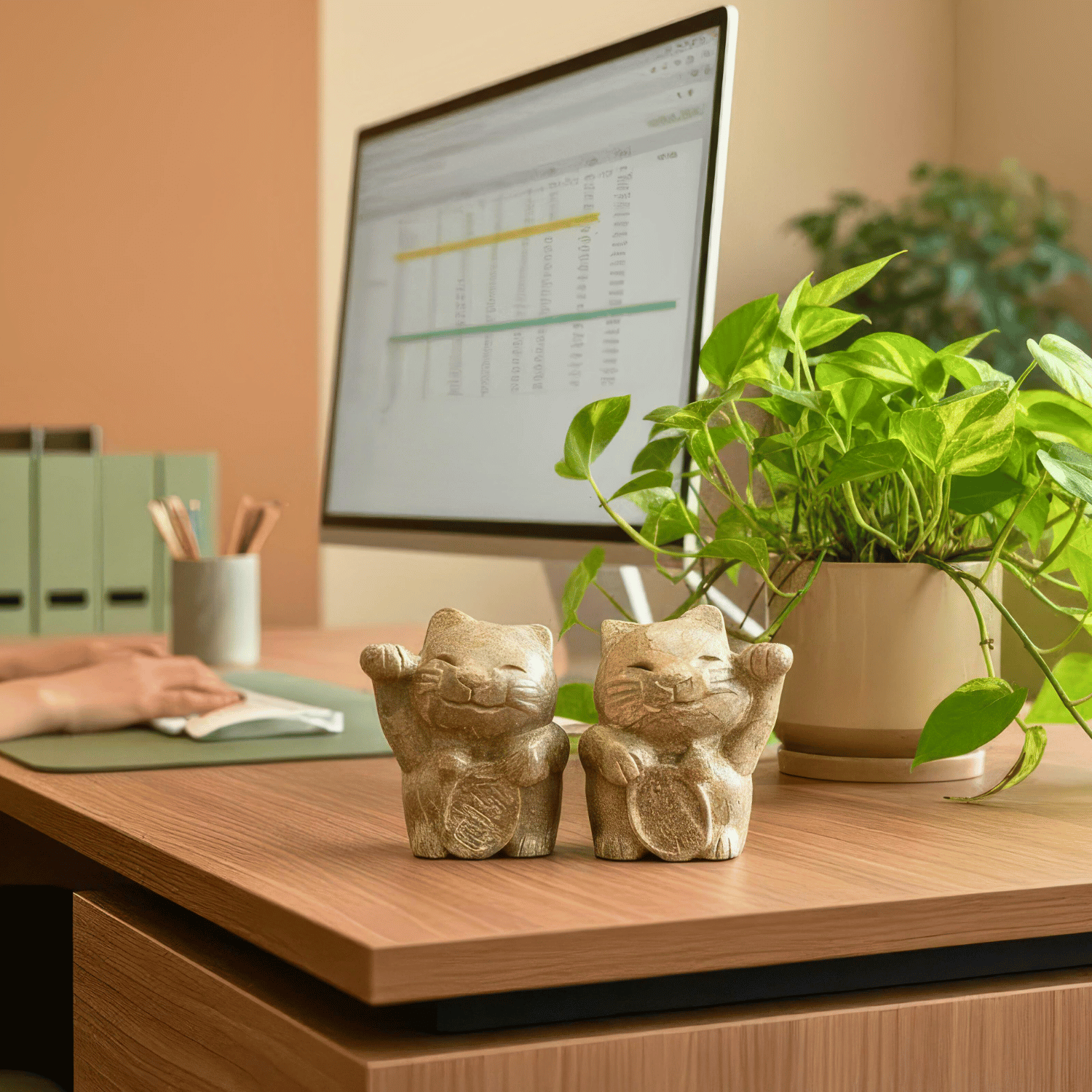 Placed in your office, business, or wealth corner, the Pyrite Lucky Cat creates a stable prosperity field. It represents the balance of attracting opportunity while maintaining control and protection over what you build. This makes it especially powerful for entrepreneurs, investors, and anyone focused on financial expansion.