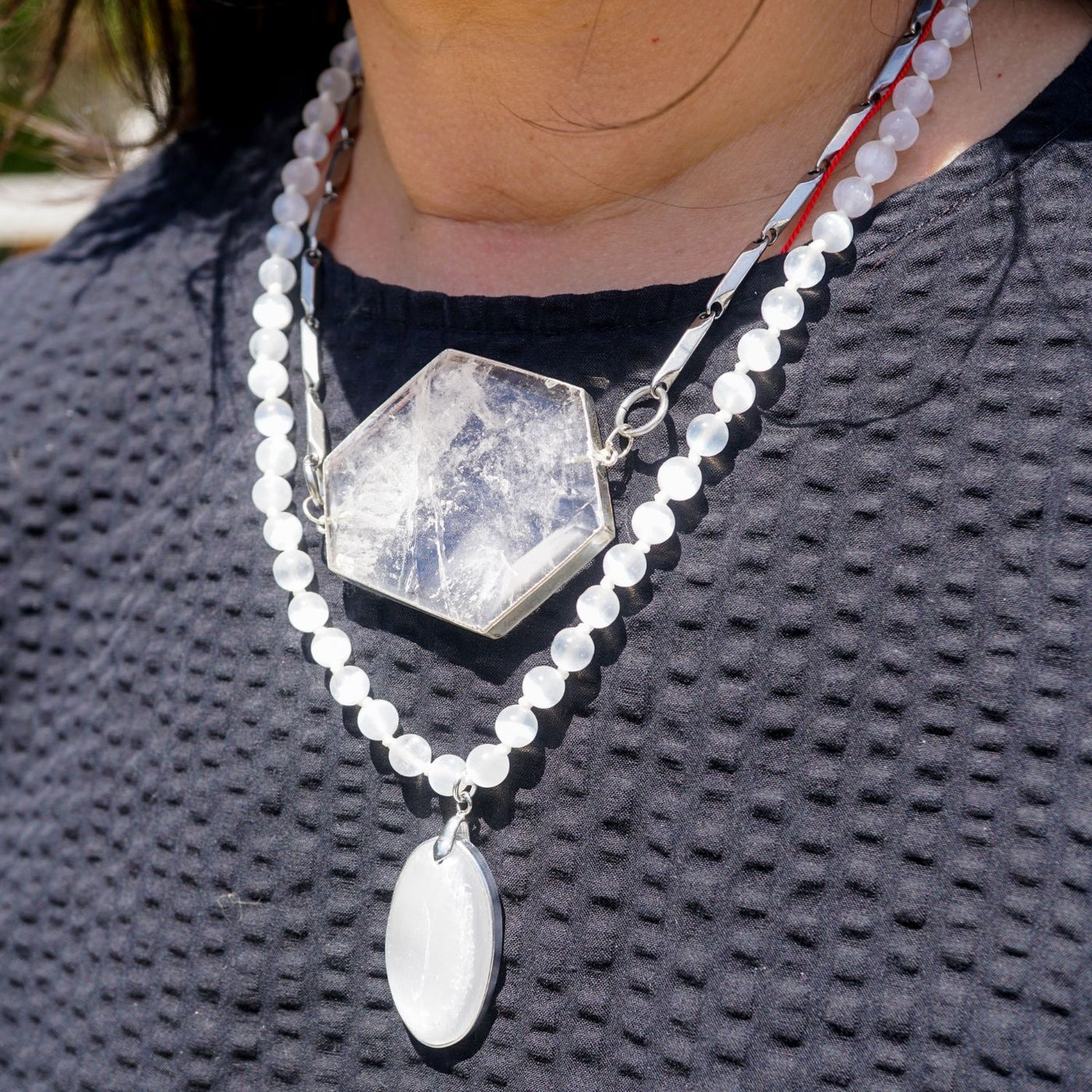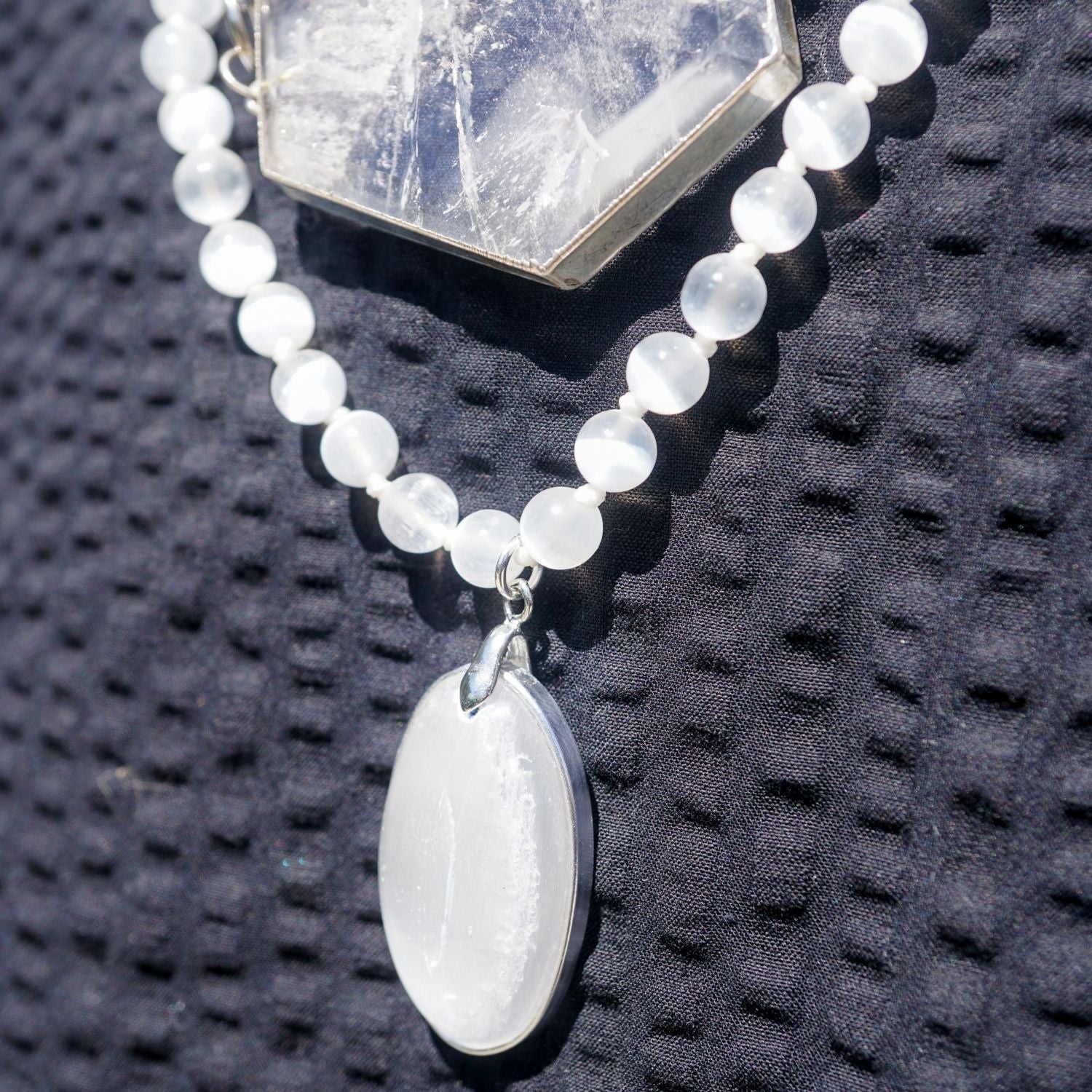 Selenite is a master cleanser. It clears energy, uplifts the spirit, and cuts through illusion. But in this form, it becomes something more: a wearable portal to your higher self. It’s stillness and motion. Silence and knowing. Light and forward movement—wrapped into one powerful energetic thread around your neck.