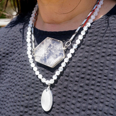 Wear The Portal necklace during meditation, healing work, or any moment when you need to reconnect to your highest self. Let it sit over your heart or throat center to amplify clarity, soften your field, and invite in pure presence and protection.