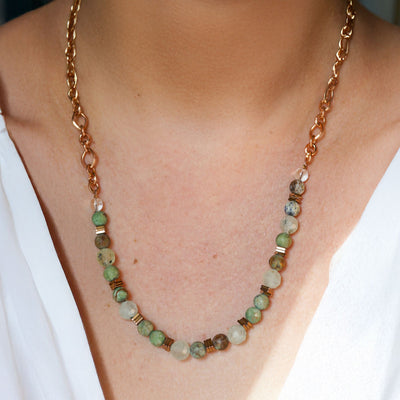 The Sage Necklace is a portal to presence. It carries the energy of the one who listens before they speak, sees beyond the noise, and chooses truth without force. It was designed to help you remain centered and spiritually attuned—even when the external world is chaotic. The crystals in this piece support a clear mind, open heart, and grounded intuition: