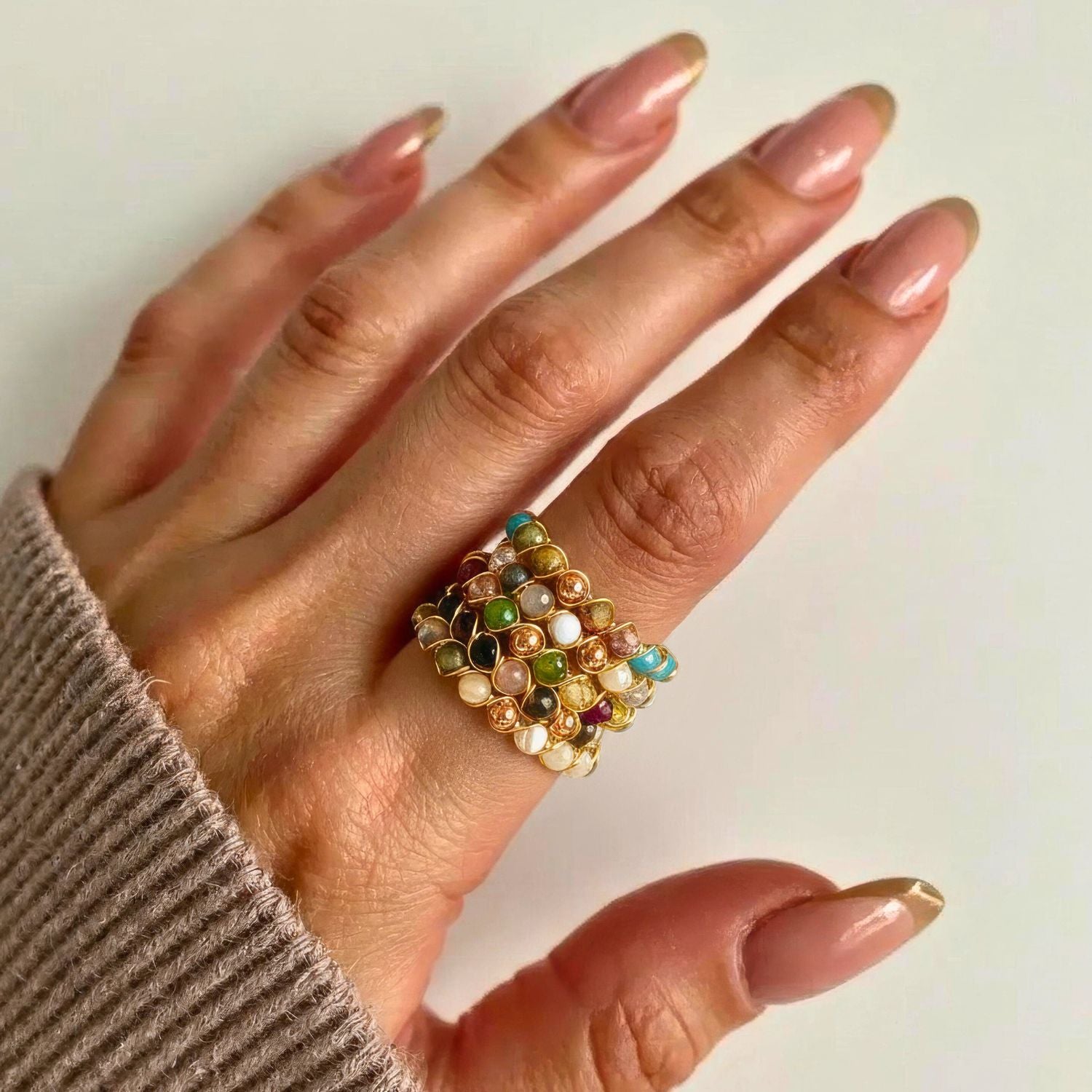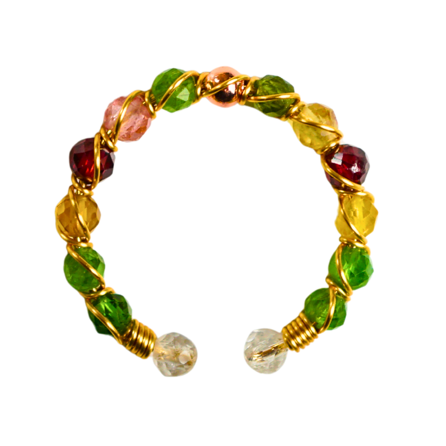 This is manifestation you can wear. The 528Hz Frequency Ring is designed to bring your energy into coherence with creation, abundance, and heart-led alignment. Watermelon Tourmaline and Green Chrome Diopside open the heart to receive, while Garnet ignites momentum and Yellow Opal fuels optimism and confidence. Anchored in copper and Clear Quartz, this ring helps turn intention into action—fast.