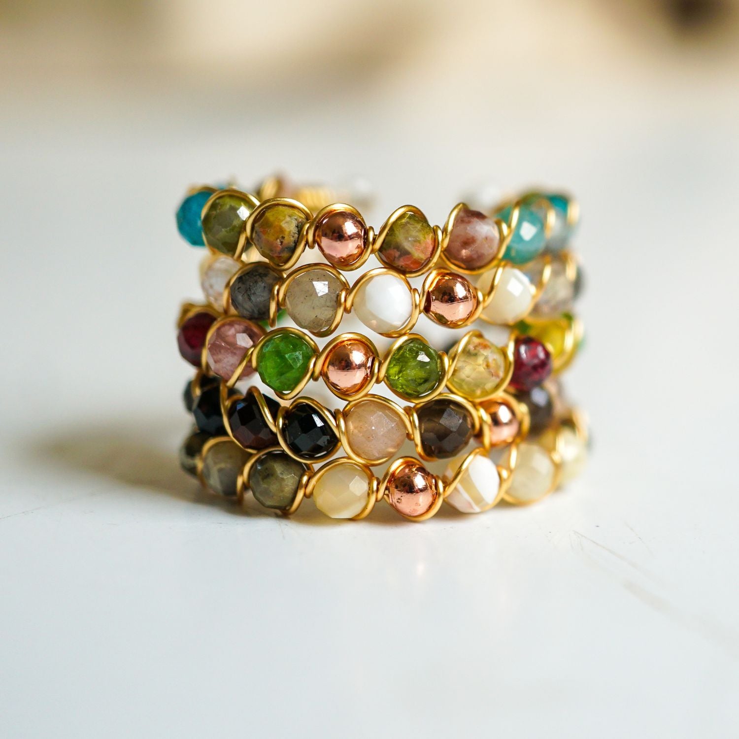 Wrapped in gold wire, the ring forms a continuous energetic loop that allows the frequency to circulate throughout your field while you wear it. This is a powerful tool for intention setting, abundance work, creative expansion, and calling in aligned opportunities.