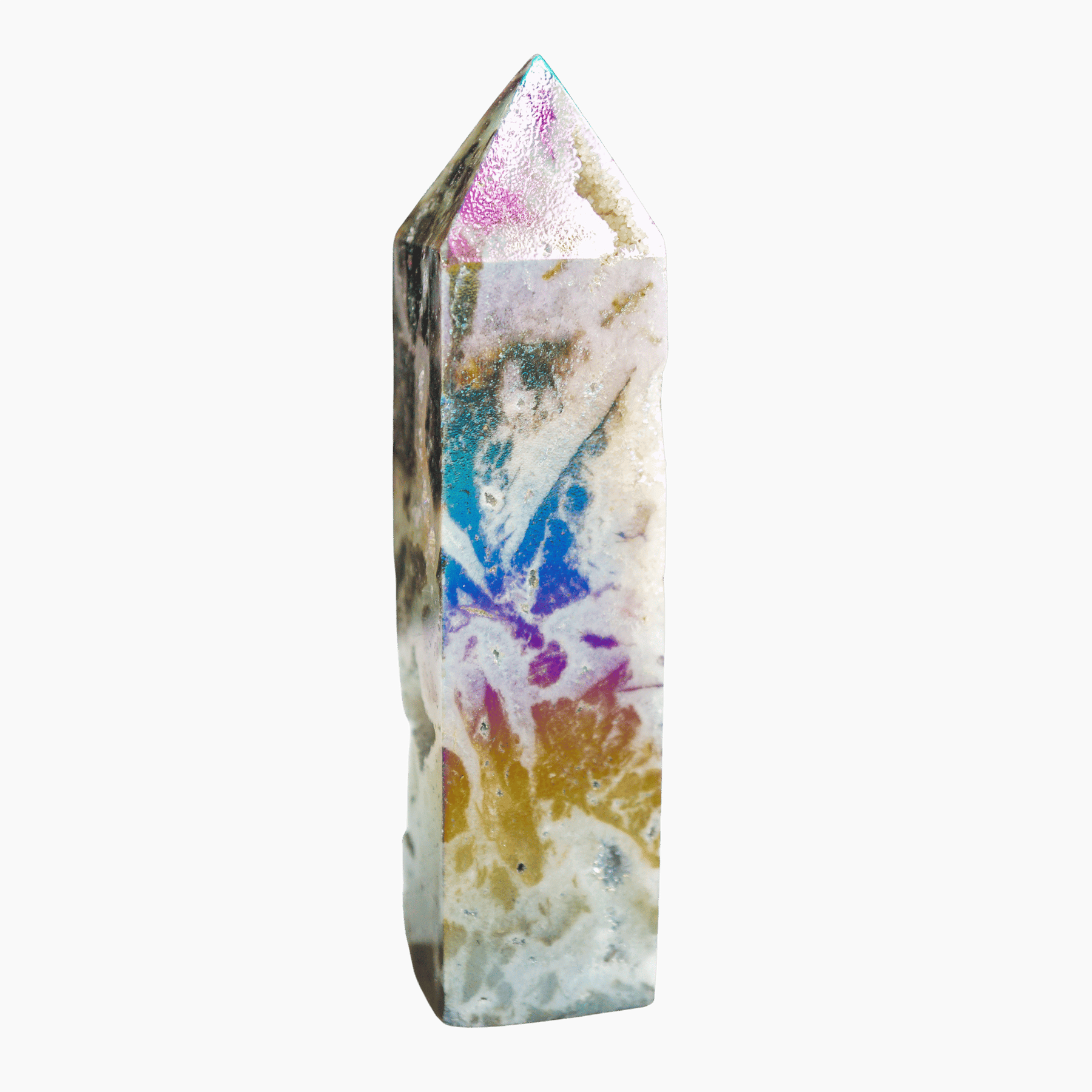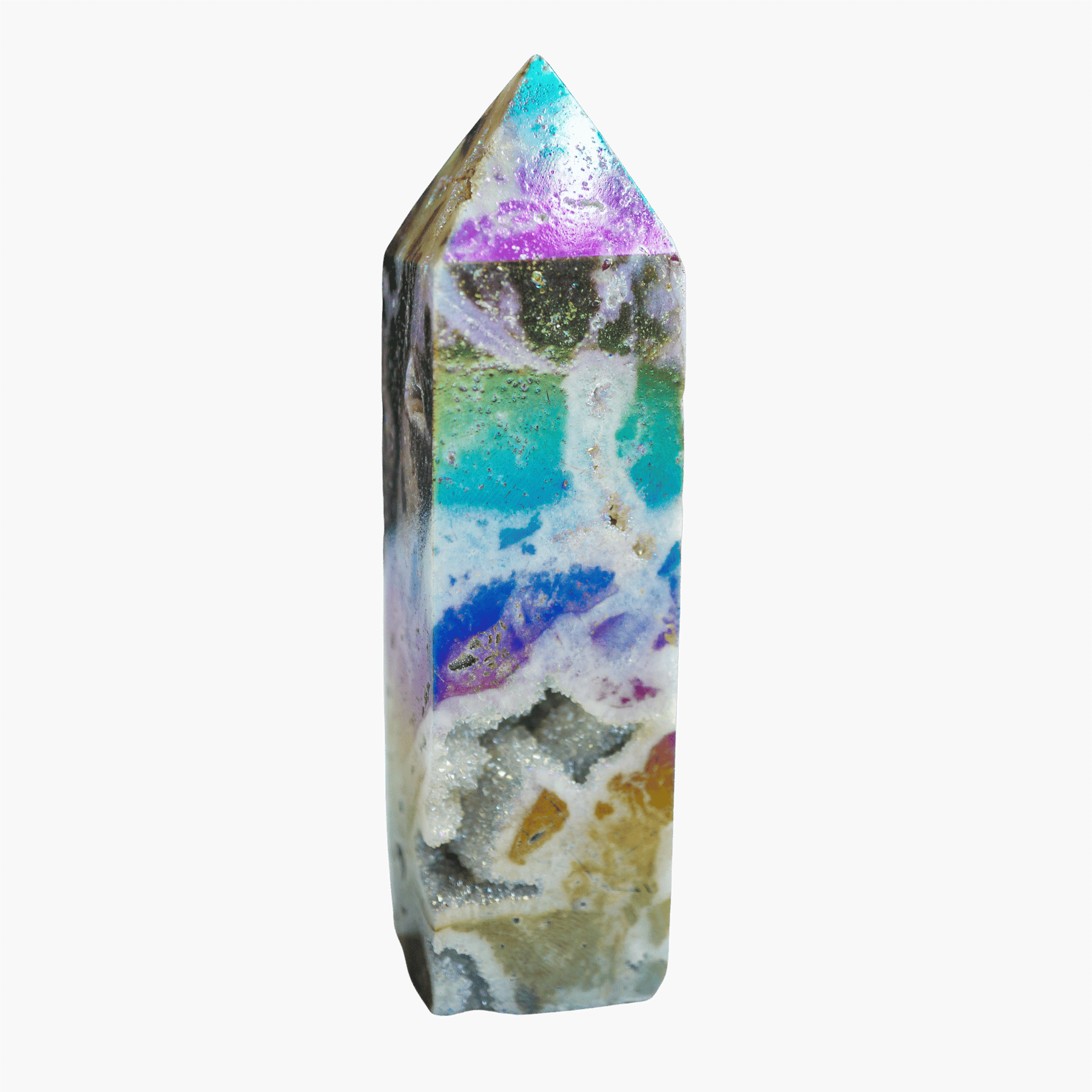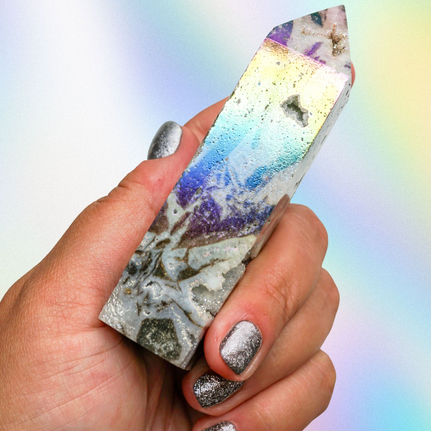 Enter: Angel Aura Sphalerite—a next-level energetic ally combining the earthy grounding of Sphalerite with the celestial energy of Angel Aura. This isn’t just a beautiful piece (though it absolutely is). It’s a stabilizing force that helps you hold more light, without tipping into burnout, chaos, or emotional overload.