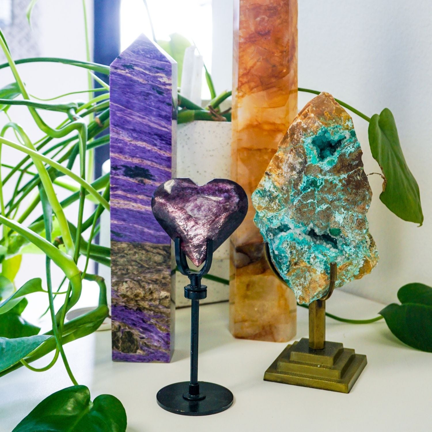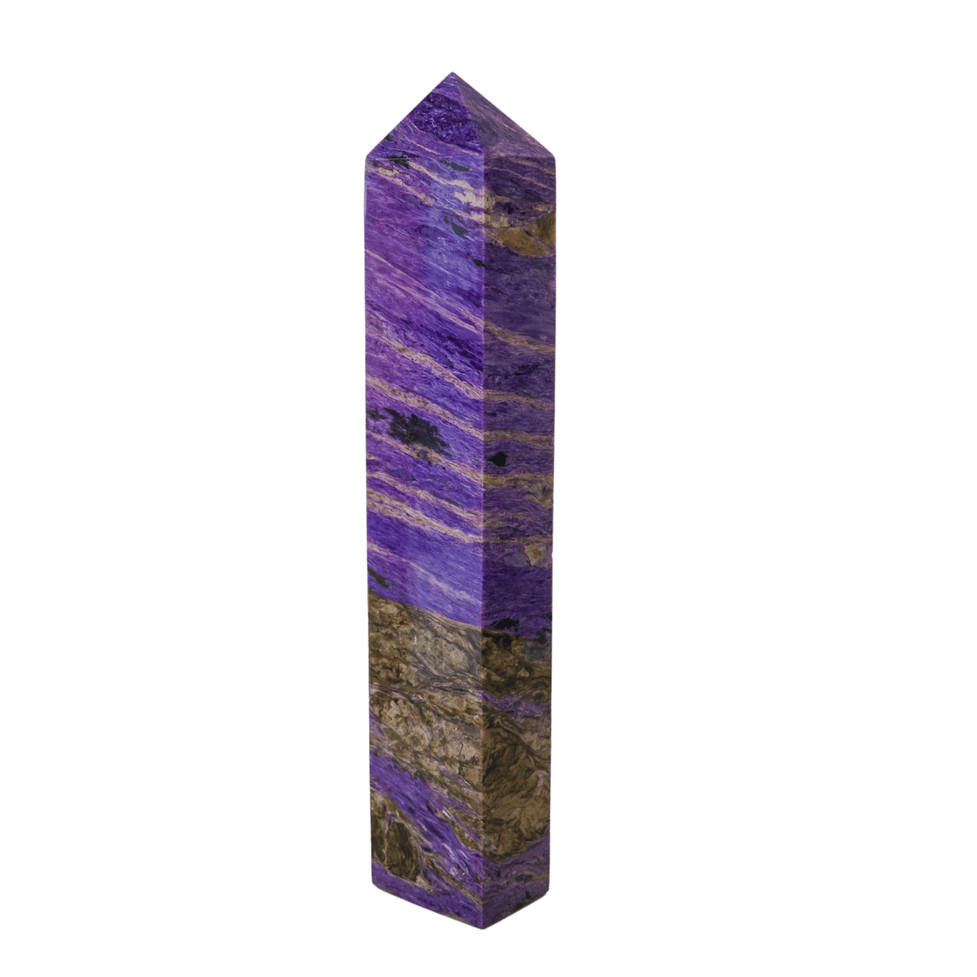Rare, mesmerizing, and utterly unique—this Charoite Tower was chosen for its deep lavender swirls and the sense of cosmic energy it radiates. Charoite is a stone of profound spiritual transformation, helping to dissolve fear, release negative patterns, and support you through big life changes. Its soothing energy calms emotional storms and inspires courage, clarity, and insight. Display this exceptional piece where you seek inspiration or inner growth—it’s a true conversation starter and a portal to higher wisdom and peace.
