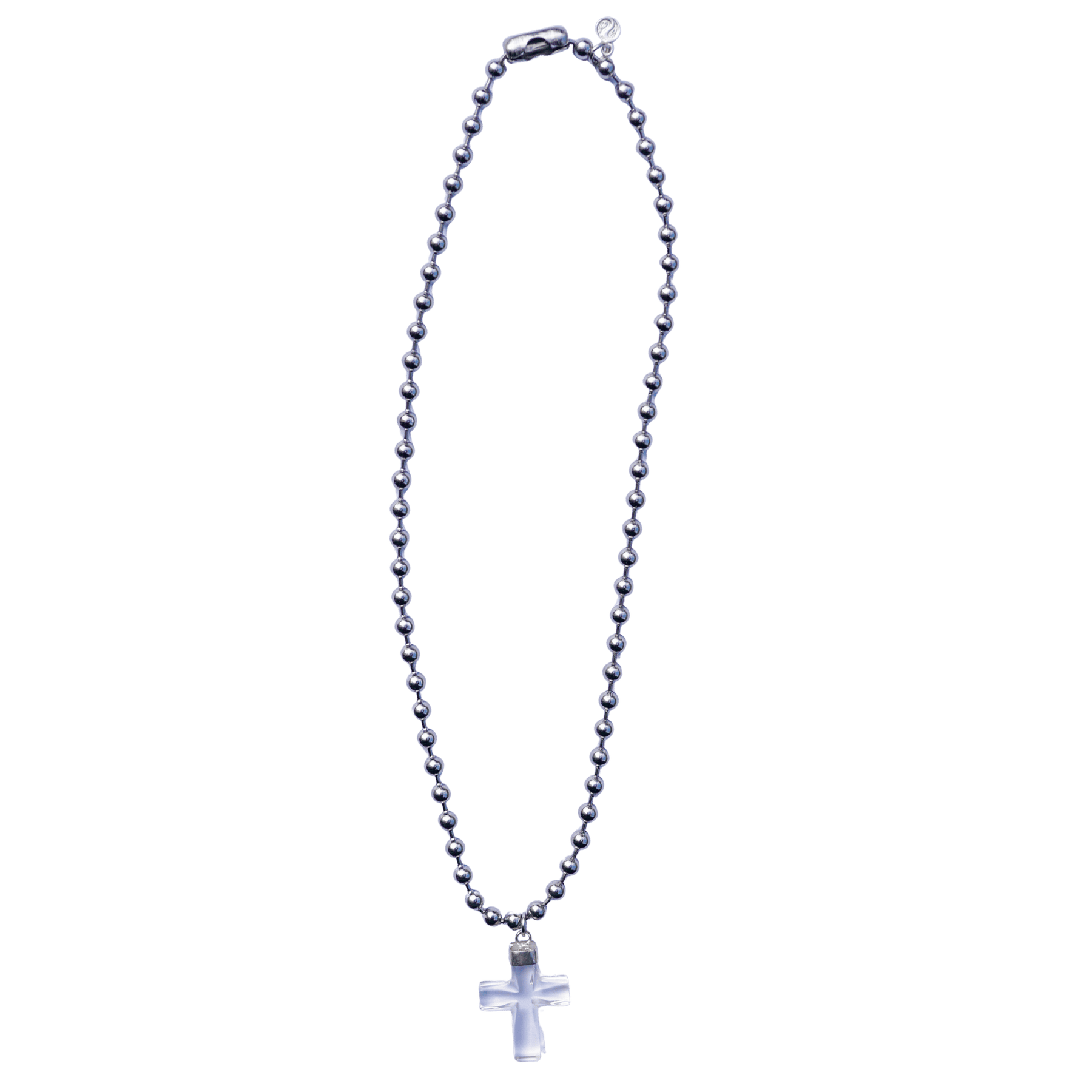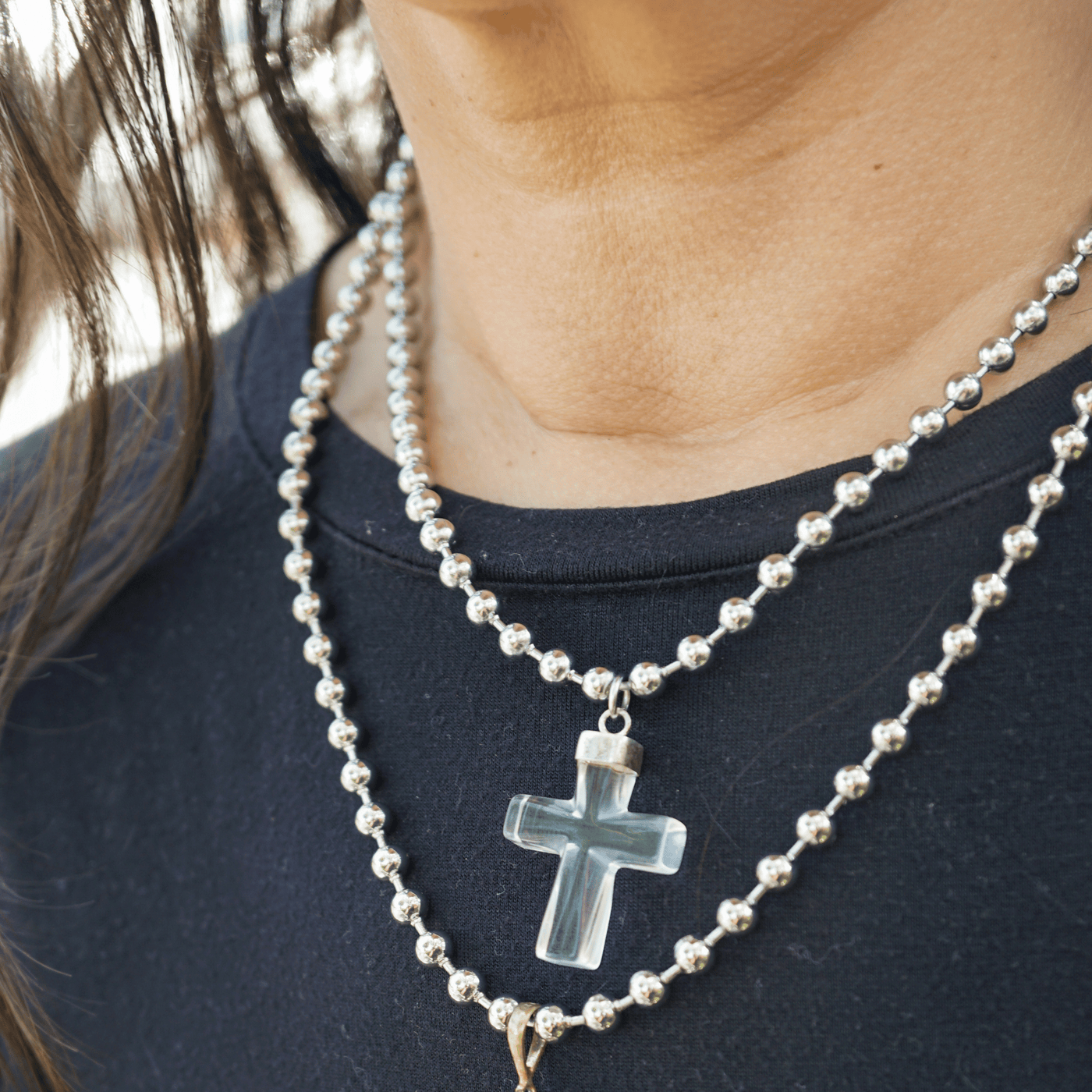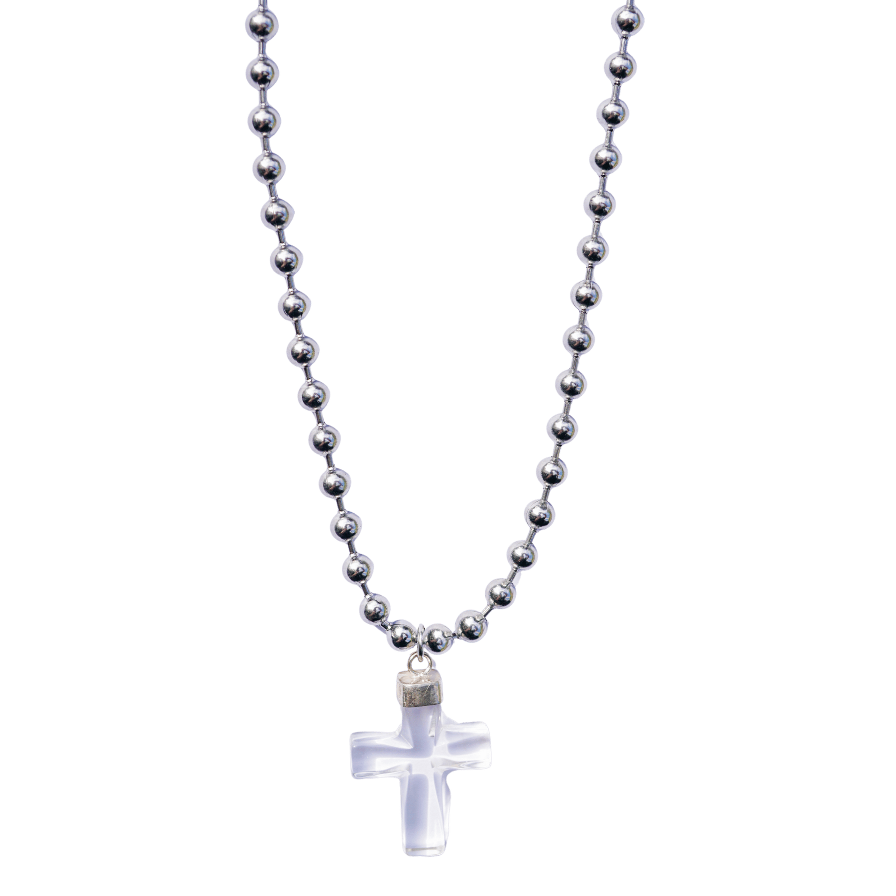 Clarity meets divinity in this sleek, sacred design. The clear quartz cross is a powerful amplifier—of light, intention, and spiritual alignment. Known as the “master healer,” clear quartz magnifies whatever energy you program into it, making this piece a customizable tool for any intention. Paired with silver ball chain, which guides energy inward, this necklace becomes a wearable altar for presence, peace, and purification. Only a few of these sacred tools exist.