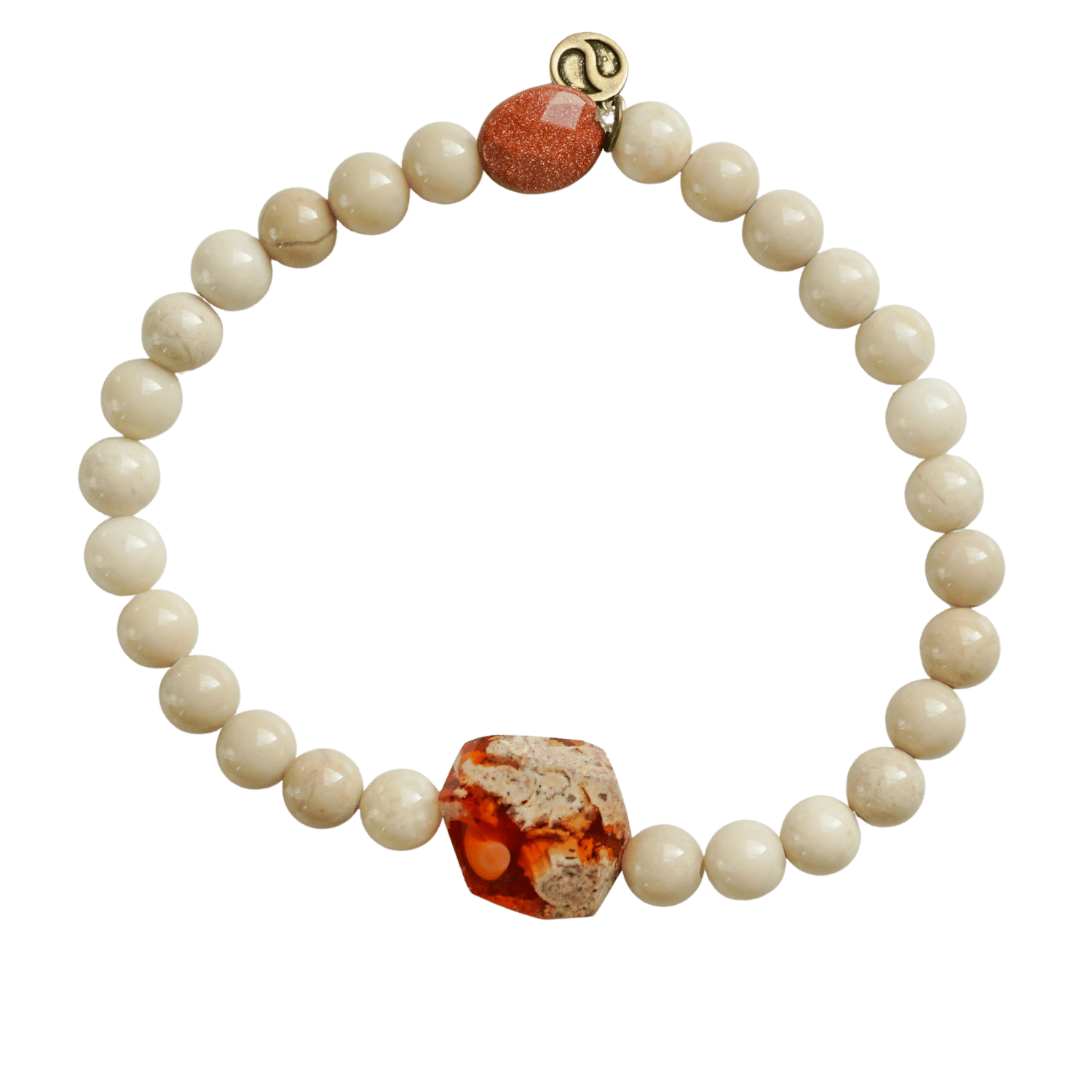 A single Goldstone bead adds a subtle energetic spark. Often called the stone of ambition, Goldstone supports confidence, optimism, and momentum, encouraging you to keep moving forward even when the path feels challenging.