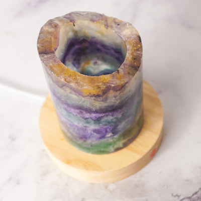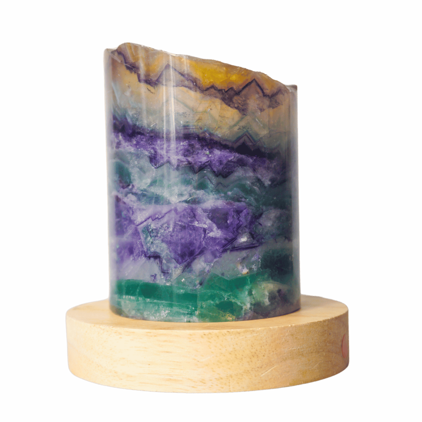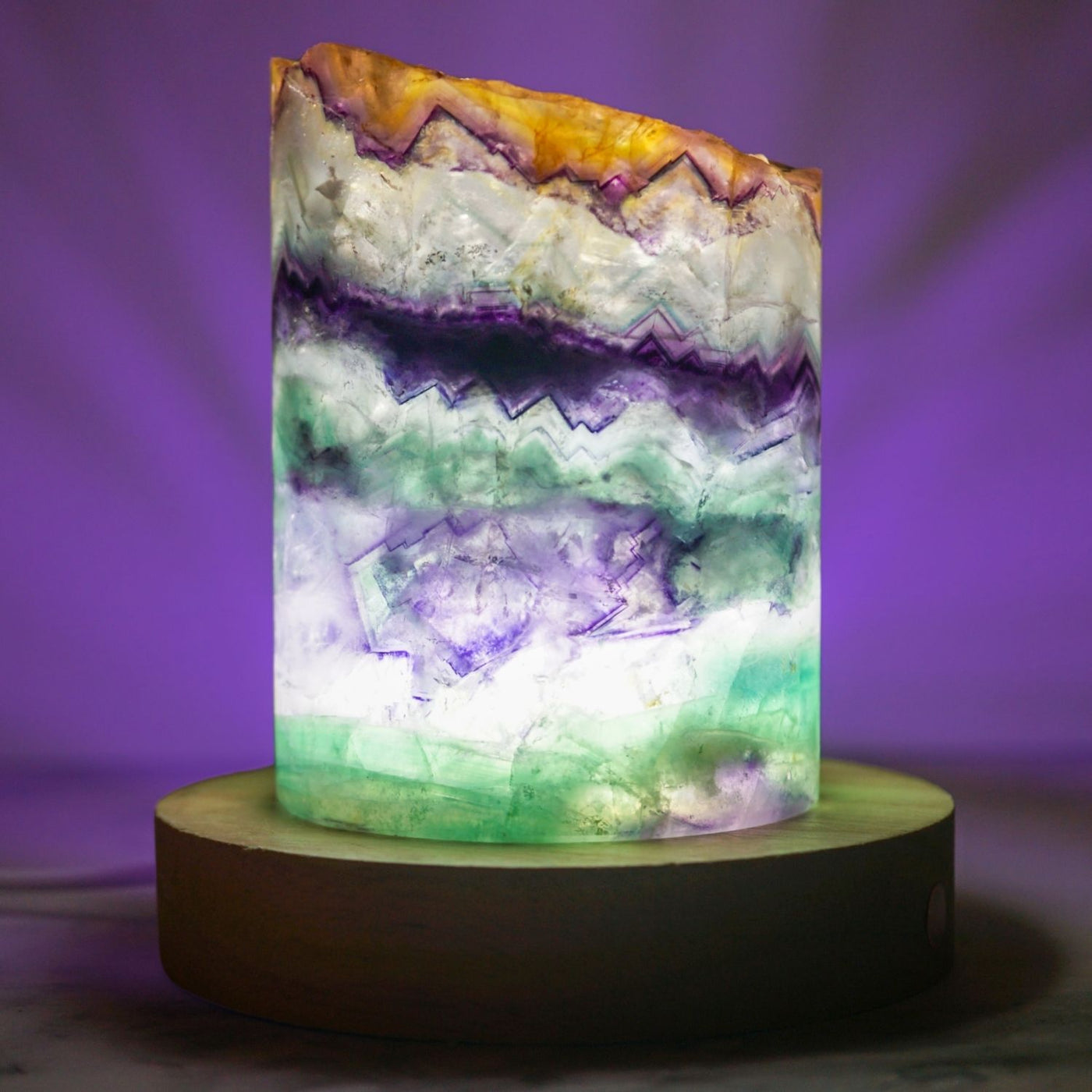 Crafted from a solid column of natural Fluorite, each lamp glows with layered bands of soothing purples, greens, and blues—the natural colors of healing, heart-centered clarity, and inspired action. Fluorite is known as the Stone of Order and Focus, prized for its ability to sweep away confusion and bring structure to emotional and mental chaos. As the USB-powered base illuminates the crystal, the energy of Fluorite is activated, sending ripples of organization, balance, and grounded insight into your environment.
