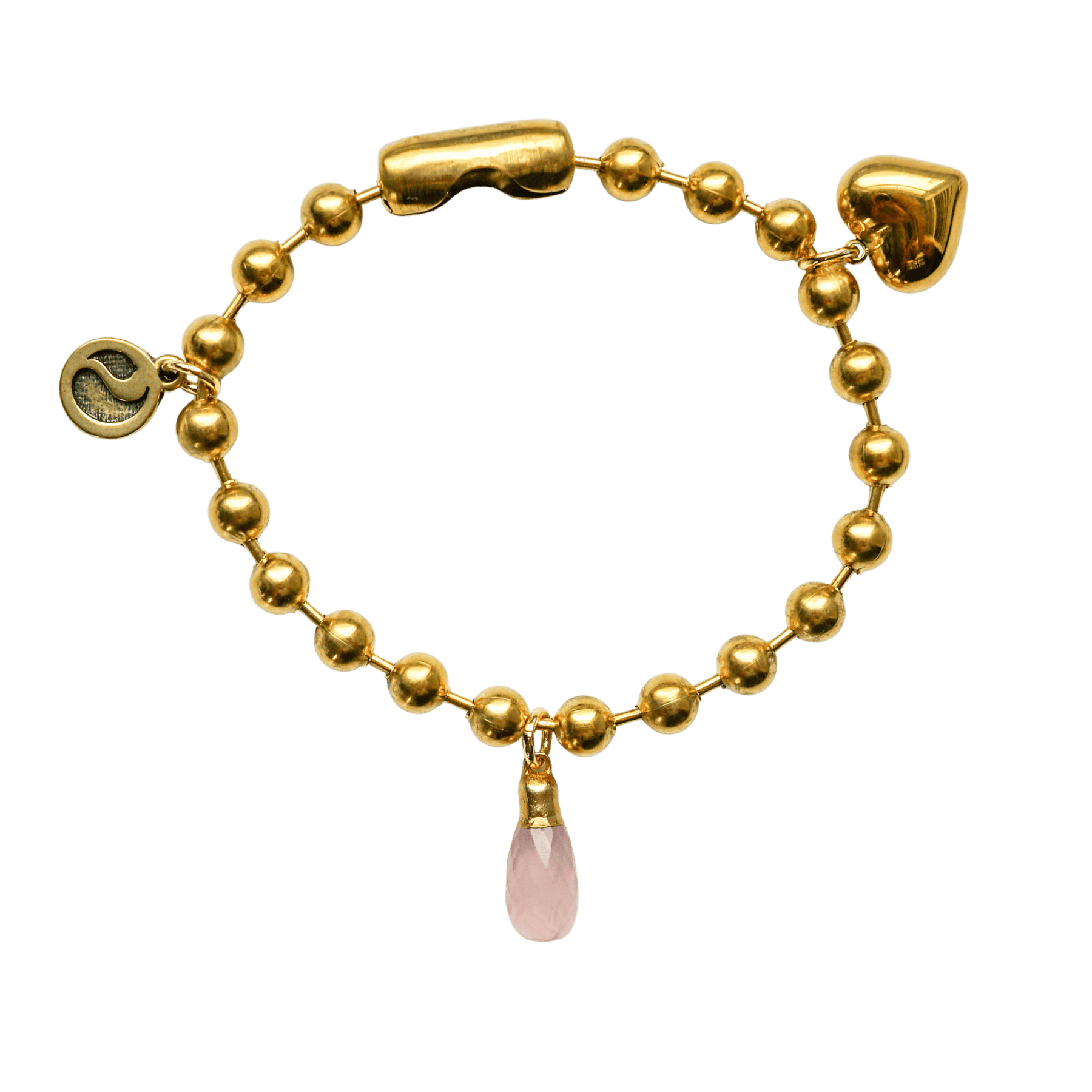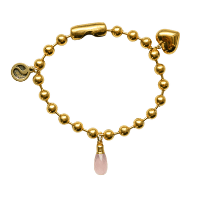 Gold Charm Bracelet with Rose Quartz & Gold Heart