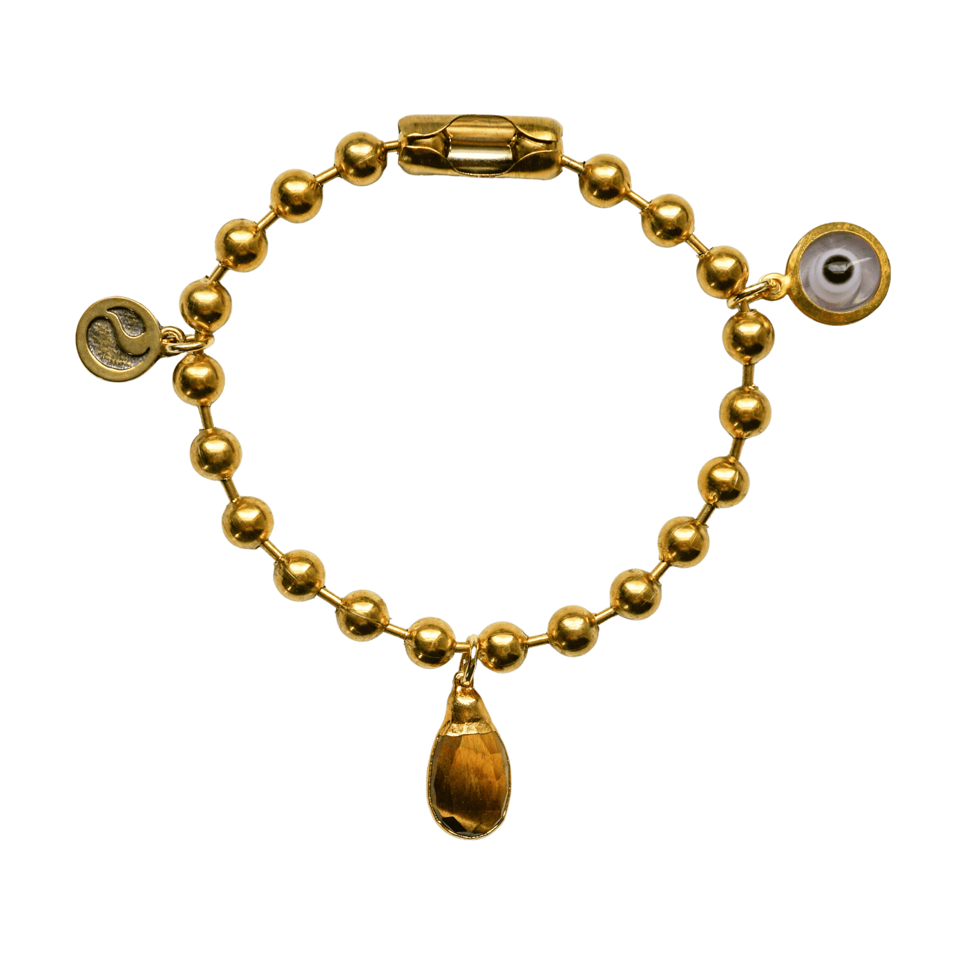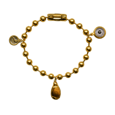 Gold Charm Bracelet with Tiger's Eye & Clear Evil Eye