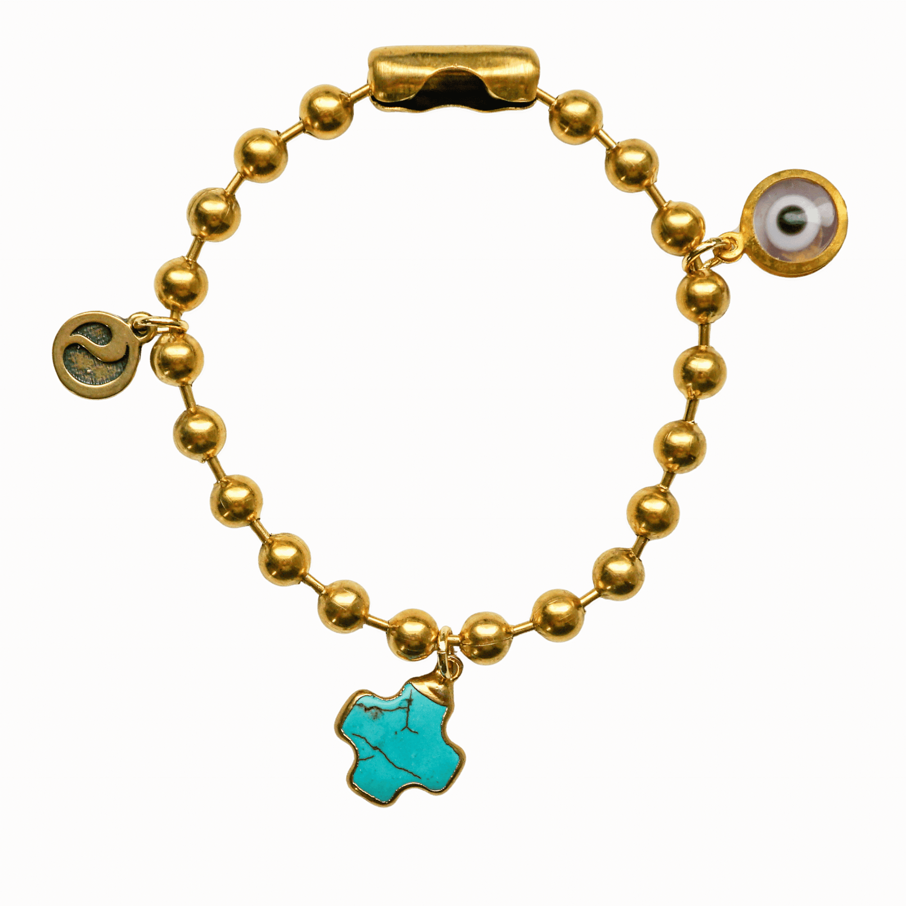 Gold Charm Bracelet with Turquoise Howlite & Clear Evil Eye Reviews