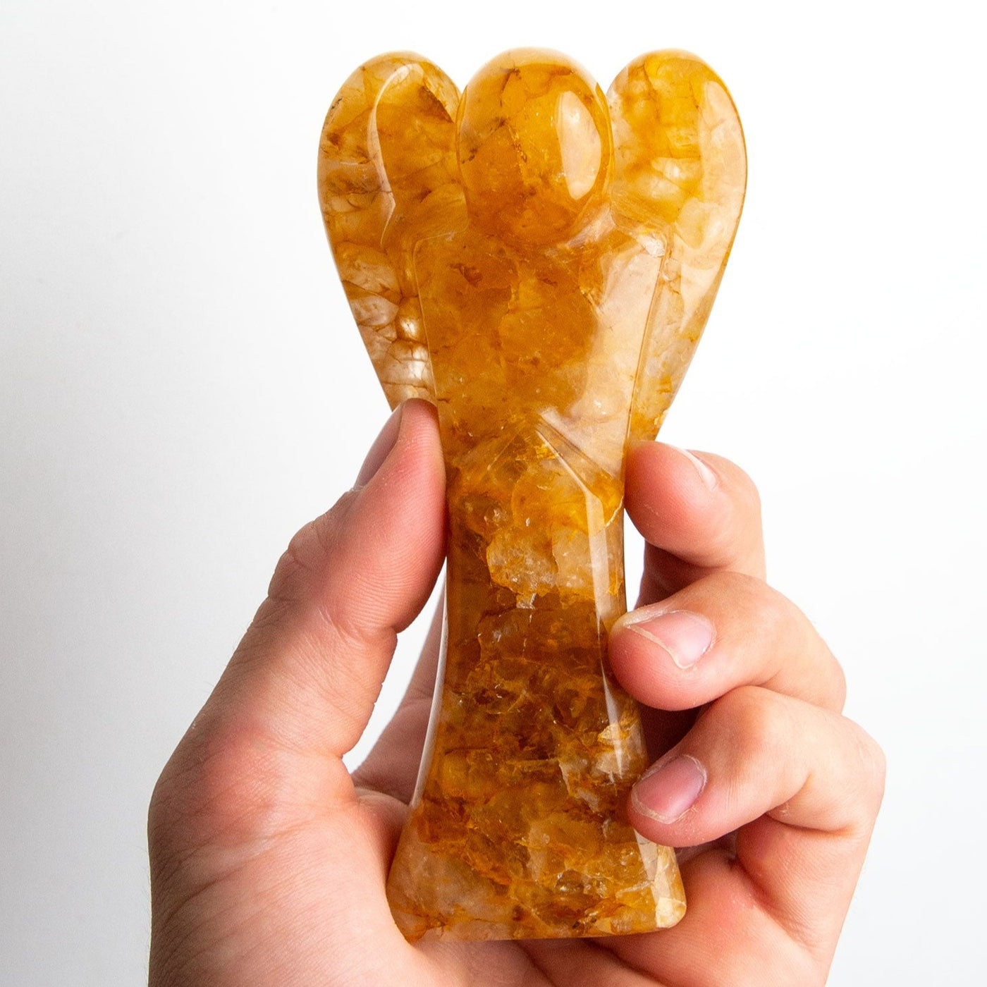This Golden Healer Quartz Angel will fuse with your solar plexus, third eye, and crown chakras. The effect? A broadened, expanded mind, ability to access new perspectives, a calmer mind with less panic and worry, and an ease with an abundance mindset, leaving lack and scarcity mindset behind. Let this powerful Golden Healer Angel provide you with an invisible auric halo and a golden state of mind.