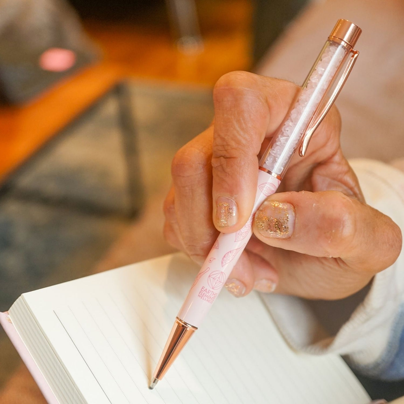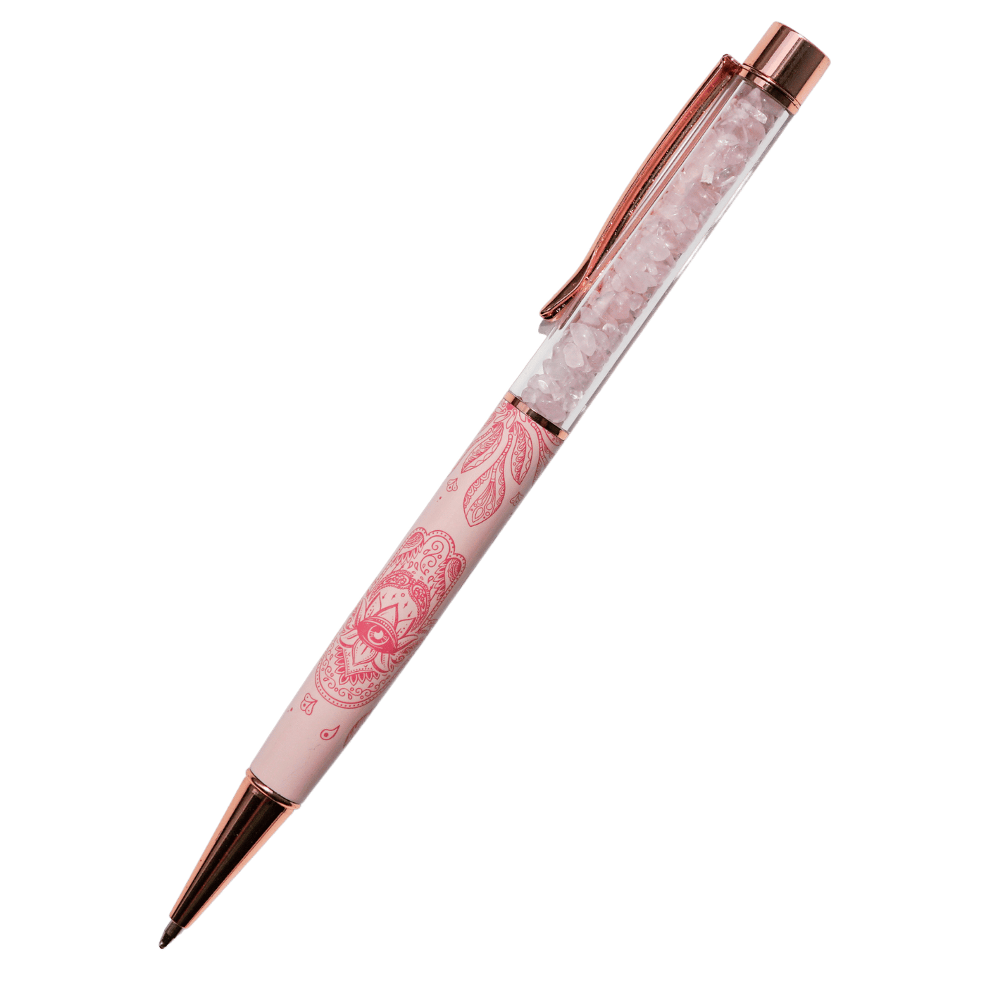 Pair it with the Hamsa Rose Quartz Journal for a complete ritual-writing experience, or keep it by your bedside, altar, or desk as a daily reminder to write with grace, gentleness, and truth. Its smooth ink flow and comfortable grip make it perfect for everything from deep journaling to everyday note-taking—infused with higher vibration every time.
