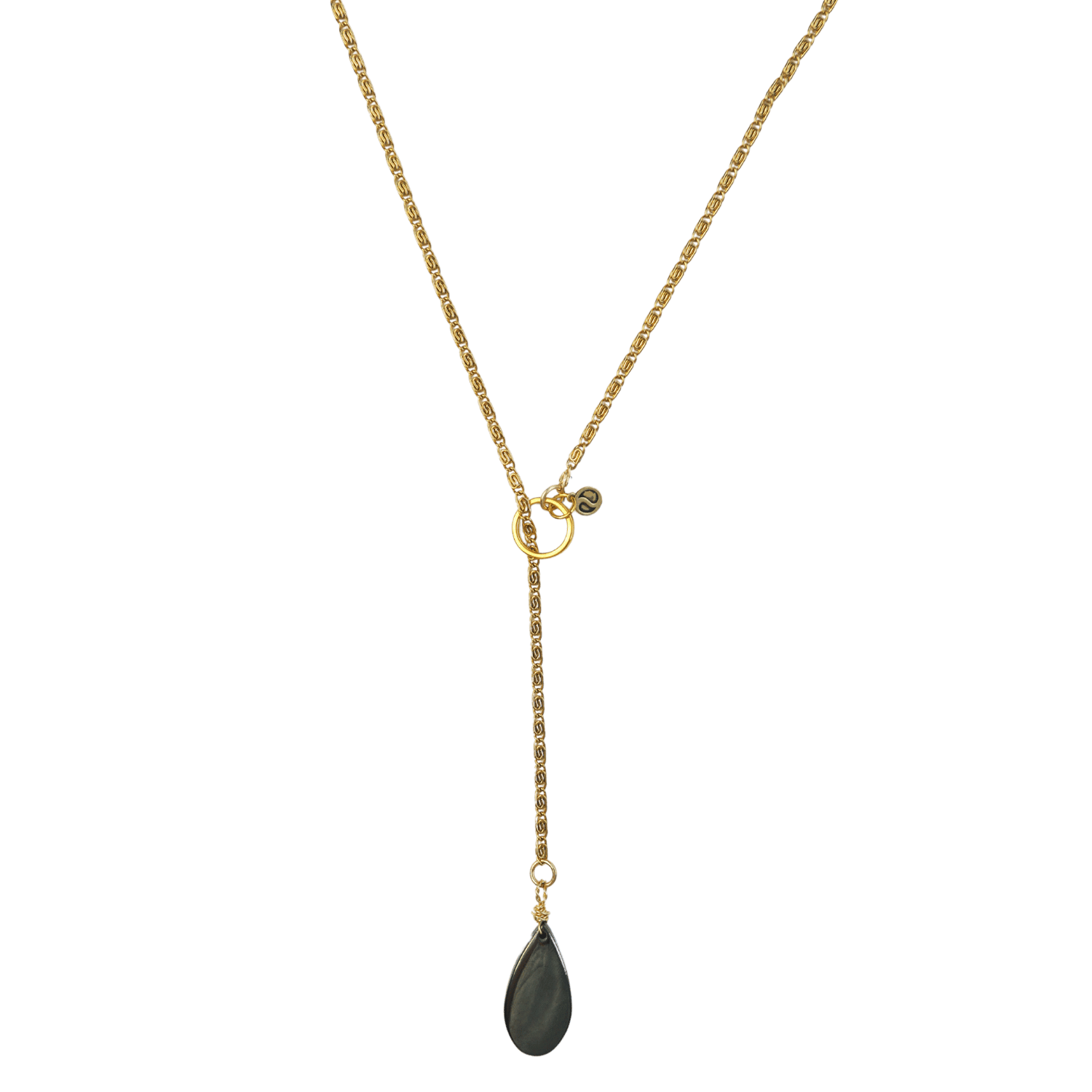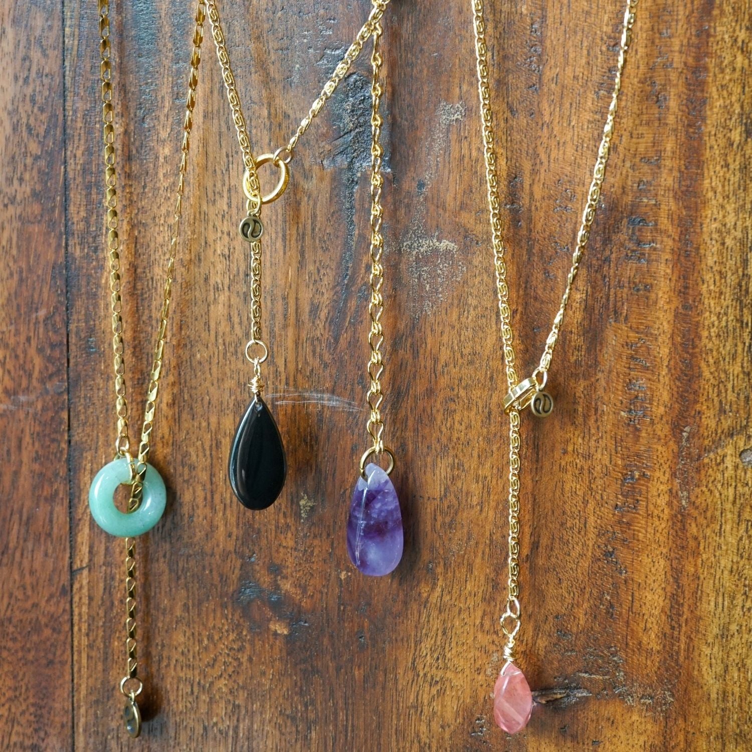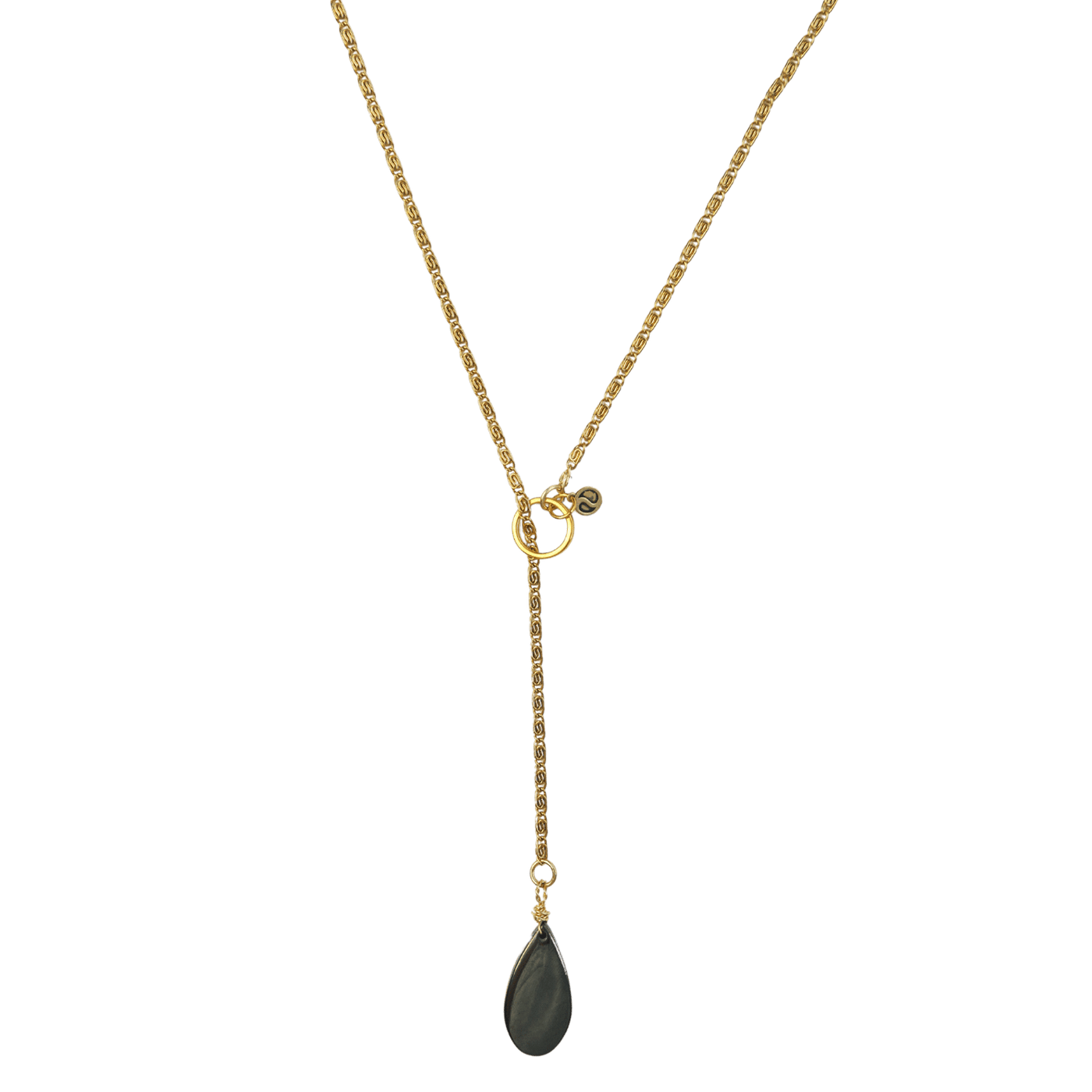 This sleek, minimalist drop is paired with a gold chain that enhances its strength and presence—chosen intuitively to match its frequency. Handmade as part of our Aligned Adornments collection, this piece was designed to move with your energy while keeping you rooted and aligned.
