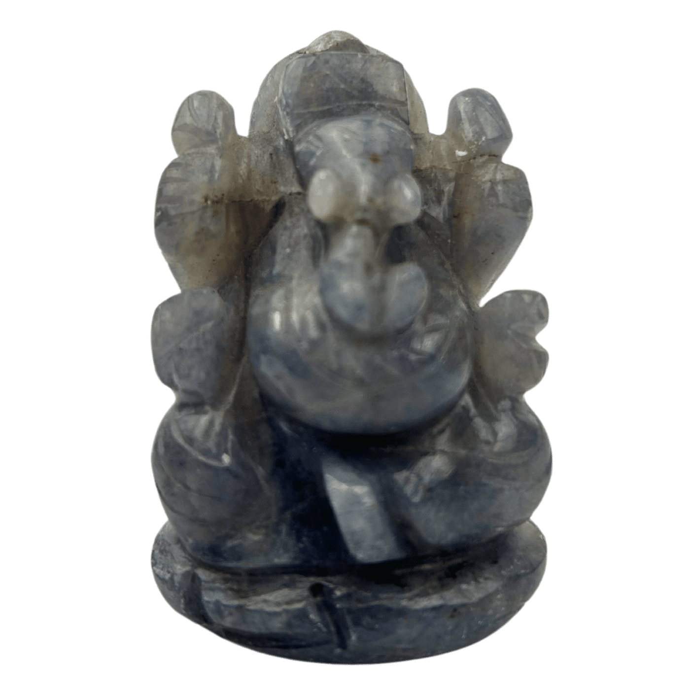 The Iolite Ganesh is a captivating fusion of spirituality and healing energy, featuring the revered figure of Lord Ganesh, the remover of obstacles, carved from the beautiful, deep blue-violet hues of Iolite. Known for its transformative and intuitive properties, Iolite enhances inner vision and clarity, while Ganesh’s presence brings wisdom, prosperity, and the power to overcome challenges. Perfect for meditation, spiritual work, or as a meaningful decorative piece, this powerful combination fills your space with divine energy and protection. 2.5" tall