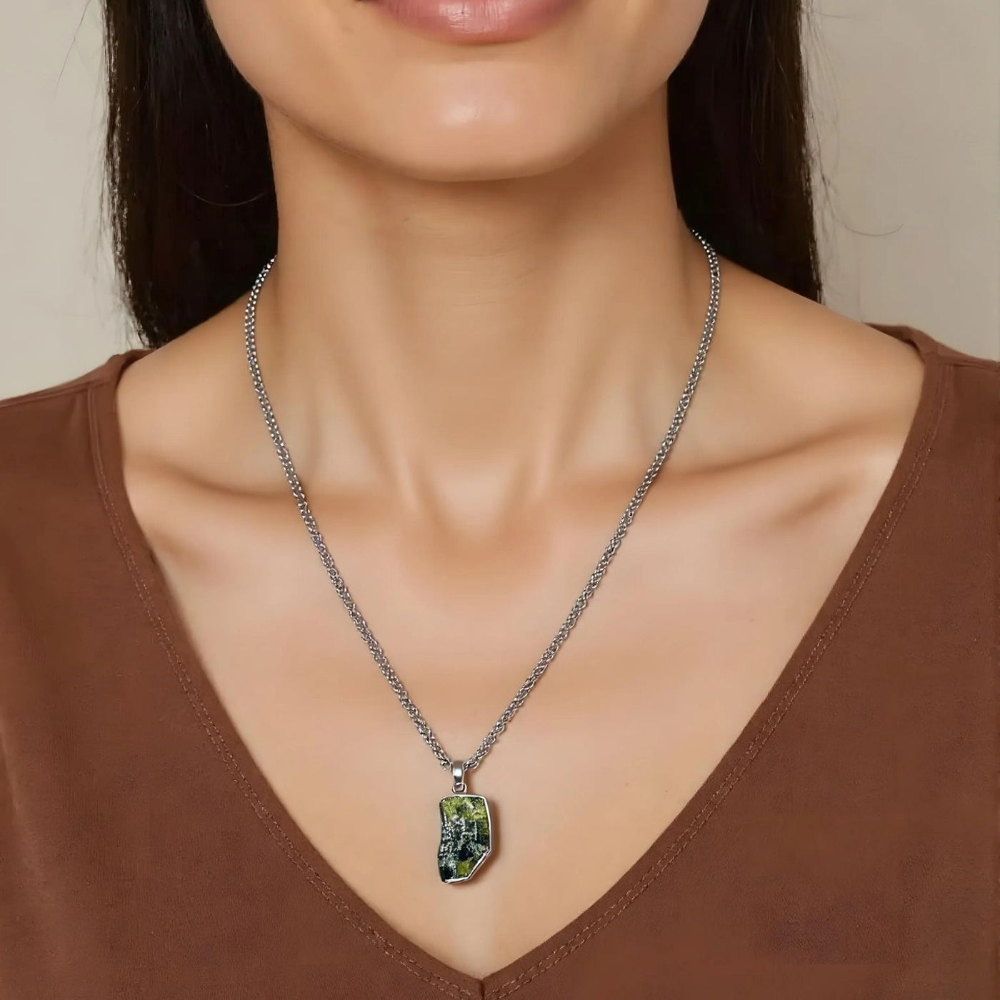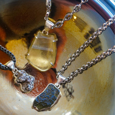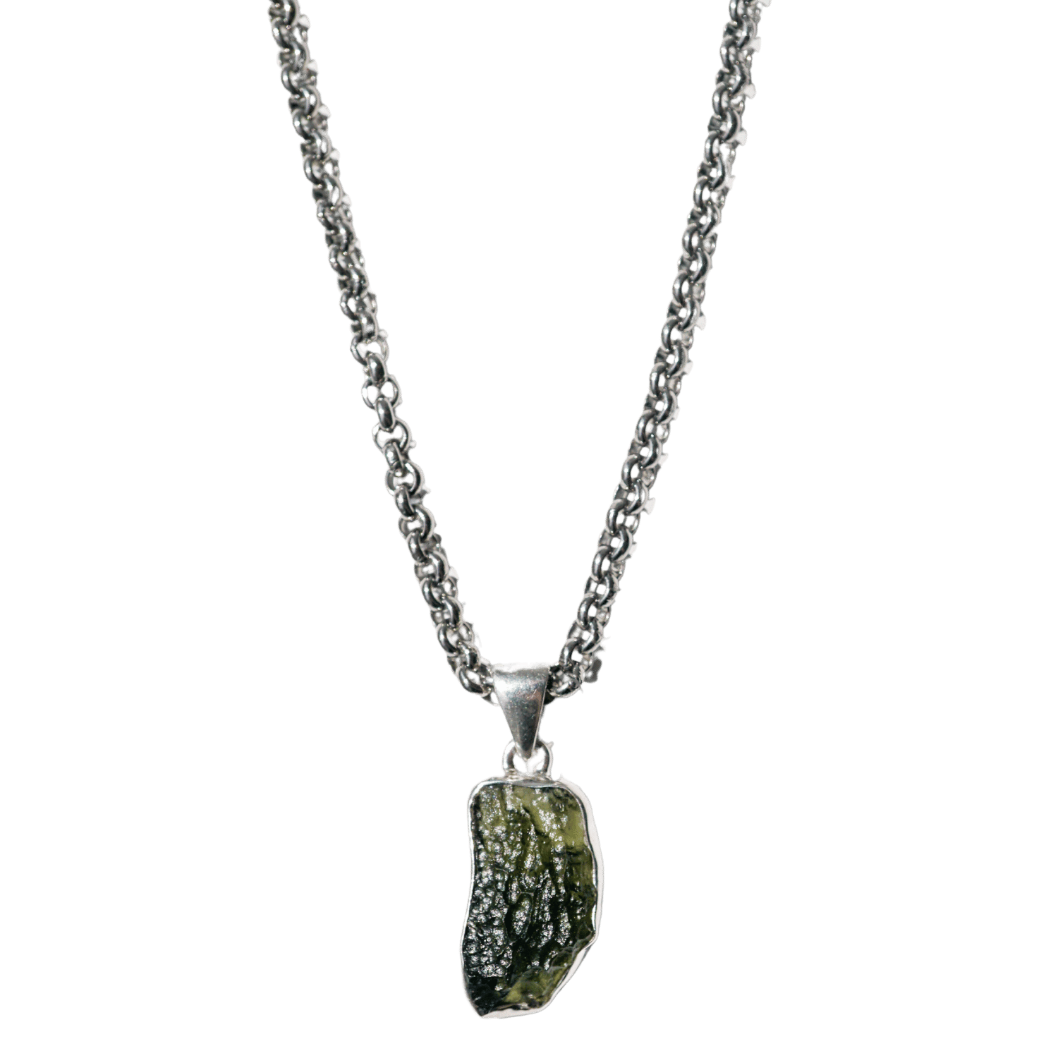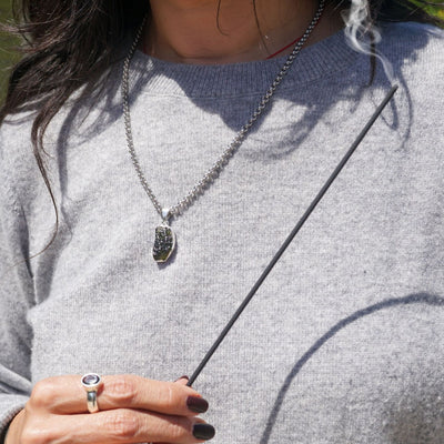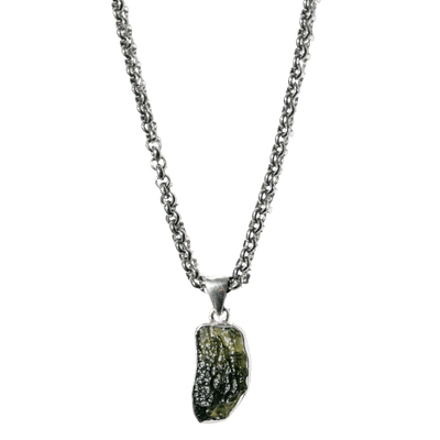 Every Moldavite pendant is completely unique in shape and texture, hand-selected for its raw beauty and energetic strength. The chain is intentionally chosen to complement its power and wearability.