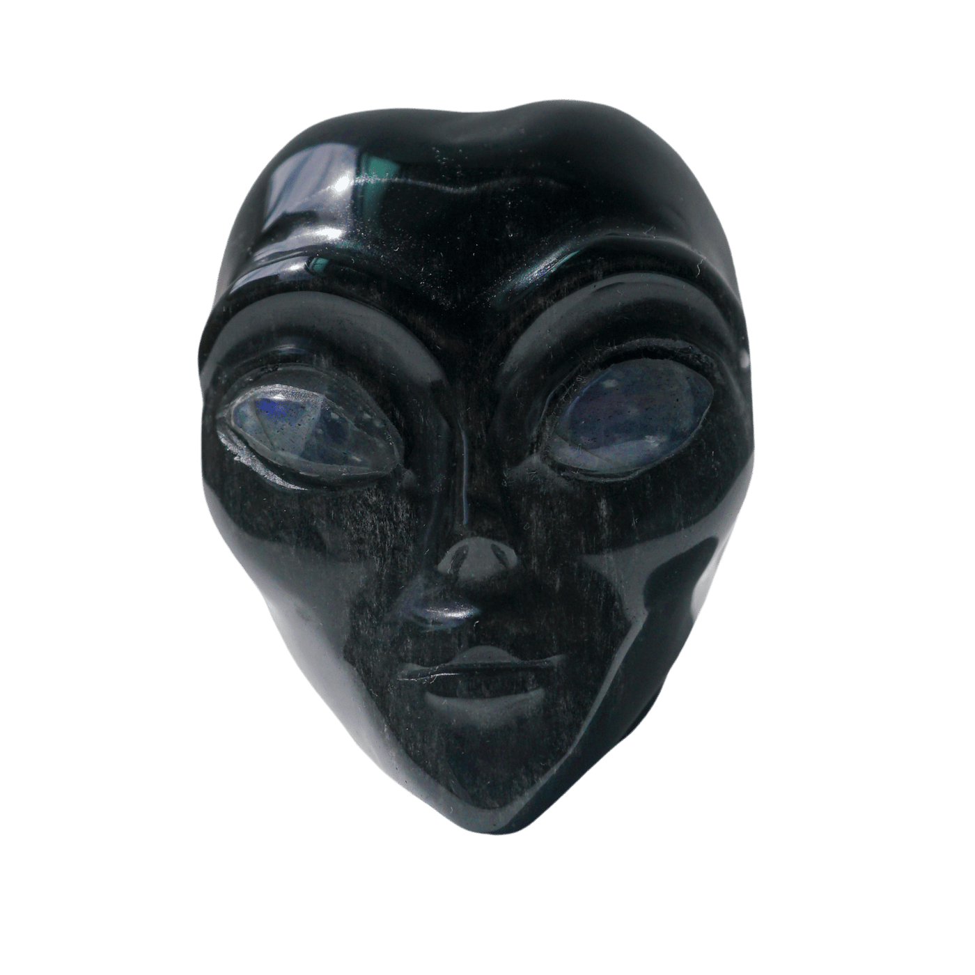 The Obsidian Alien Head is both a guardian and a mirror—designed to help you confront what hides in the dark and protect your field as you do. Obsidian is a volcanic glass known for its ability to reveal truth, cut cords, and create powerful energetic boundaries.